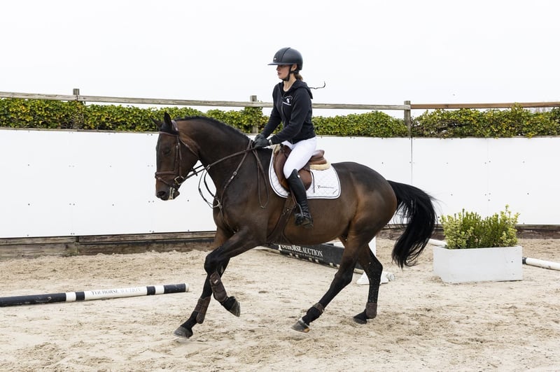 Seems like a nice amateur horse with good willingness and a calm character. Is only recently under saddle. Jumps with a good way and moves nicely. Suitable for multiple disciplines. Sire Clarimo Junior – 1.40m level. Modern son of Clarimo (1.60m) with attitude and technique. Dam Charming Star – 1.30m level. Damline Granddam Superstar. From this line come: G-Star – 1.45m Big Star – 1.50m Further in the line: Baronescha – 1.60m, Castello – 1.45m, Exploir – 1.40m and multiple horses at 1.30m level. Approved stallion: Verdi TN – 1.70m.