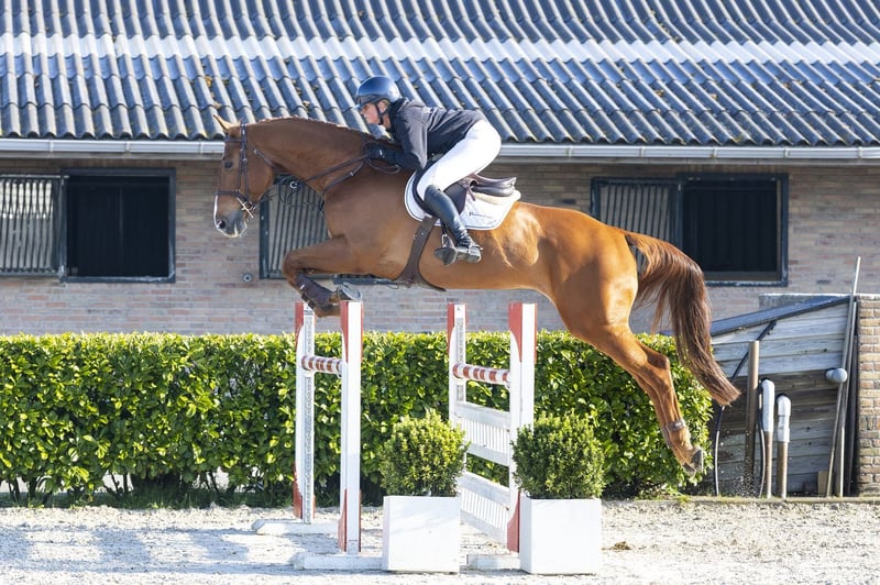 Nice amateur horse with a calm character, plenty of scope and a good attitude. Very kind and well-behaved, pleasant to ride and comfortable in the work. Jumps with a good technique, is careful and has a strong hind leg. Competes at 1.20m level and is suitable for both amateur and semi-professional. A reliable horse that is easy to ride and has a good mindset. Sire Eames de Hus (1.40m) is a son of HH Conrad (1.60m), who competed at the highest international level and is known for passing on scope, technique and attitude. In the second line we find Con Air (1.60m), a proven producer of international showjumpers. Dam Lovely Lady Dutch ES (Gemini CL xx) comes from a modern, blood-type line with both showjumping and eventing influences. Dam line (family) The dam line combines blood and performance with proven sport results. From this strong family come, among others: Sam de Mariposa – 1.45m Spirit de Muze – 1.45m Effraction d’Argent Z – 1.40m Further in the line we find Radetzky vt Verahof (1.30m), along with multiple horses at 1.30m–1.45m level. A modern performance family that stands out for scope, blood and sport quality.