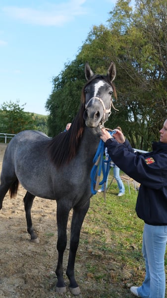 Stella, born on April 27, 2024, is a very sweet and personable yearling mare who immediately captivates with her friendly nature. She is well-behaved, attentive, and familiar with the basics of foal handling. She is eager to learn, easy to lead, stands patiently for hoof care, and is curious about new things. A wonderful young mare for someone looking for a loving future prospect, with excellent potential for further training. 📩 Feel free to contact us if interested! +43 664 5302366