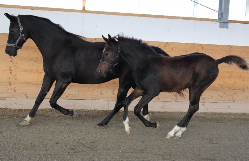 Brando ShA est un poulain arabe shagya très chic et bien typé. Il est absolument proche de l'homme et maîtrise parfaitement l'ABC du poulain. Malheureusement, Brando n'a pas pu se montrer de manière optimale lors de la sélection des poulains en raison d'une blessure et n'a obtenu qu'un "bon" ce jour-là. ( Les photos du trot datent du lendemain). Sa mère "Bonita ShA" est une jument prime de l'association ZSAA et a passé le test de performance des juments. Le père de Brando ShA est "Tolstoj al Samarra" ShA, approuvé et testé HLP (distance). Brando ShA est exempt de CA et de SCID (testé). Brando ShA pourrait rester chez nous encore 1 an pour l'élevage. www.shagya-araber-hofstetter.de