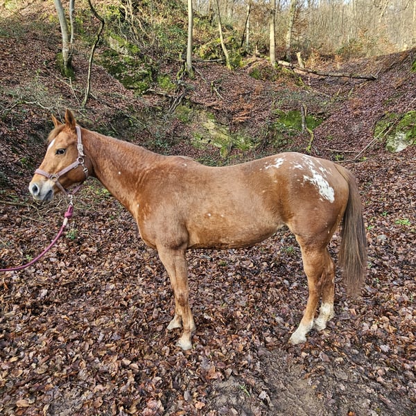 Zum Verkauf steht meine fast 10-jährige Stute mit einem Stockmaß von ca. 157cm. Sie hat vor einigen Jahren eine Grundausbildung erhalten, wurde danach jedoch nur selten geritten, überwiegend im Gelände. Seit sie in meinem Besitz ist, wurde sie langsam und schonend wieder an die Arbeit herangeführt und mehrmals geritten. Auch an die Bodenarbeit wurde sie behutsam herangeführt und macht dabei sehr gut mit. Charakterlich ist sie nicht schreckhaft und absolut lieb, benötigt jedoch klare Regeln und eine konsequente Führung. Sie eignet sich als Freizeit- und Geländepferd für Reiter mit etwas Erfahrung. Platz vor Preis. Weitere Informationen gerne auf Anfrage.