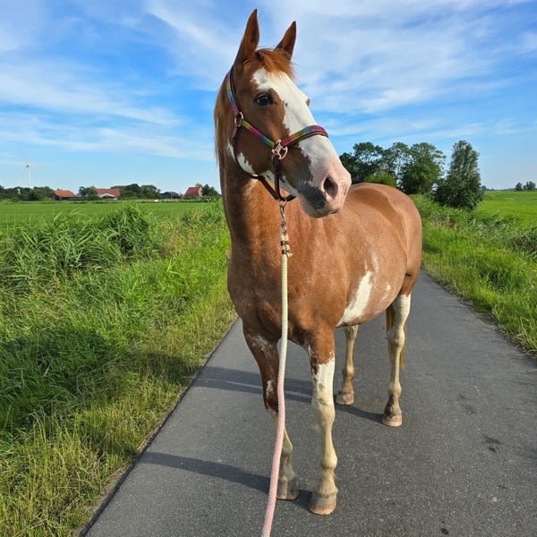 Hallo. Im Auftrag steht diese 15 jährige, 1.68 große Fuchsstute zum verkauf. Sie ist solide ausgebildet, läuft auf Trense und Kandare, lässt sich auch von Kindern "bedienen". Reiterfahrung und Sicherheit in den 3 Grundgangarten sollte dennoch vorhanden sein. Die Stute möchte schon geritten werden, auf pillepalle hat sie wenig Lust. Nächstes Jahr sollte sie eigendlich noch auf Turnier vorgestellt werden, was sie mit Sicherheit mehr als super meistern würde, aber nun wurde sich eben für den Verkauf entschieden. Sie lässt sich in allen drei Gangarten super reiten, ist sehr sitzbequem und man kann auch so einen Abstecher mit ihr ins Gelände machen und mal auf dem Feld ein bisschen Spaß haben. Sie ist immer händelbar und Kopfklar. Nun zu Ihren "Baustellen": Sie benötigt vorne Beschlag, da sie eine Huffehlstellung hat, die sie aber nicht beeinträchtigt. Nur ist sie aufgrunddessen sehr empfindlich am Huf. Zudem ist sie gegen Milben und Staub allergisch, das wurde aber mit einem Antiallergikum namens "Desloratadin" sehr gut in den Griff bekommen! Vor einem Jahr hustete sie immer beim reiten, sodass es abgebrochen werden musste. Das Antiallergikum bekommt sie nun seit knapp einem halben Jahr und sie ist frei von husten. Auch wenn es mal ein paar Wochen ausgesetzt wurde. Dennoch sollte sie im Offenstall stehen oder in einer gut belüfteten Paddockbox mit Heulage! Trockenes und staubiges Heu darf sie auf KEINEN Fall! Zudem ist sie schlecht in einen Pferdeanhänger zu bekommen. Transporter kein Problem! Die derzeitigen Besitzer würden sie aber dennoch auf einen Hänger bekommen, da sie Verladetraining gemacht haben und mit ihrem Problem umzugehen wissen. Da wird auf jeden Fall geholfen, sollte aber bei dem Wunsch mit ihr auch mal wegzufahren, weiter trainiert und gefestigt werden! Die Stute wird mit ihrem Zubehör verkauft (Sattel, Sattelgurt, Trense, Kandare, Abschwitzdecke, Regendecke...) Probereiten natürlich möglich. Bei Interesse sehr gerne anschreiben oder wenn noch Fragen offen sind. KEINE Ratenzahlung! KEIN zur Verfügung stellen! KEINE Händler!