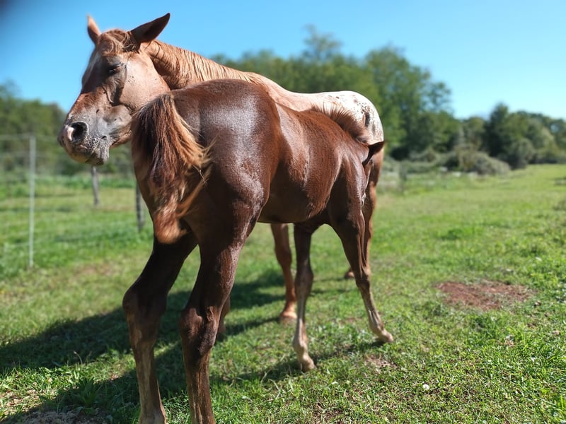 Ofrecemos a la venta una hermosa y joven yegua. La llamamos Samba, y sus documentos americanos aún están en proceso. Ella es saludable, curiosa y se comporta muy bien. Ya levanta todas sus patas sin problema, incluso en el pasto y sin necesidad de cuerda. Nació el 22 de mayo de este año. En una de las fotos se pueden ver a sus dos padres; el primero es su padre, un semental appaloosa con licencia. Samba estará a la venta en diciembre, por lo que estamos aceptando reservas.