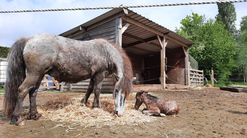 Looking for a new home for these two beautiful ponies. Bibi is 25 years old, her son is approximately 15 (no papers). I am selling them due to downsizing my carriage pony herd. They are NOT suitable for children. They have participated in lessons here but now know all the tricks to avoid listening to children. With confident adult riders, they are very well-behaved ponies. Very typical, healthy Shetland ponies, therefore 😉. Vaccinations are up to date annually, and they also receive regular dental care. They will only go to a new home if everything is suitable. They are sold only as a pair. The foal in the first two photos is due in May 2024 and can possibly be purchased together. Their carriage is also for sale for €1500.