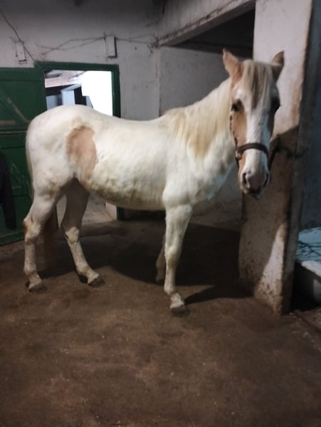 Driejarige Pintaloosa ruin, 1,52 m, edel, mooi en rustig. Appaloosa met palomino kleur. Ze werkt al aan de longeerlijn met zadel en bit, is berijdbaar en begonnen met rijden. Ze bevindt zich in Posada de Llanera, Oviedo, Asturië. Telefoon: 687850663, Eleazar.