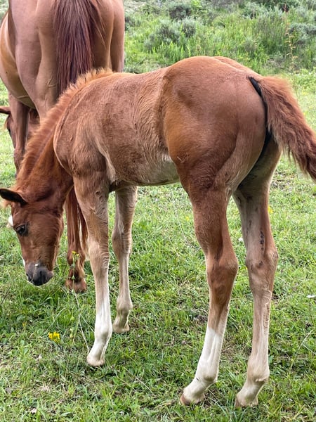 Découvrez Oakland Rock Star, une pouliche née le 19 avril 2024 qui a tout pour séduire les amoureux du cheval western et de l'appaloosa. Issue du croisement OC Appaloosa x Quarter Horse, Oakland Rock Star bénéficie d'une lignée solide avec pour père Kingly Blue Cougaran et pour mère Miss Conclusive Star. Le résultat est une pouliche au type Quarter Horse particulièrement marqué, une belle robe chestnut sobre et élégante, et un potentiel qui ne demande qu'à s'exprimer. Ce qui fait vraiment la différence chez cette petite merveille, c'est son mental. Douce, calme, avec un sang-froid remarquable pour son jeune âge, elle aborde chaque nouvelle situation avec une sérénité qui force l'admiration. Sa nature particulièrement affectueuse et sa recherche constante de contact humain en font une compagne aussi attachante qu'agréable à travailler au quotidien. Un caractère en or qui facilite grandement la mise en main et promet une relation privilégiée avec son futur propriétaire. Actuellement au niveau de la manipulation, Oakland Rock Star est une page blanche prête à être façonnée selon vos envies. Ses aptitudes naturelles la destinent pleinement au western, à la balade, au mountain trail et au ranch, autant de disciplines où son tempérament posé sera un atout considérable. À 4 000 €, cette pouliche représente une opportunité rare d'acquérir une base de qualité, saine de corps et d'esprit, pour construire un beau projet équestre. N'hésitez pas à nous contacter pour recevoir davantage d'informations, de photos et de vidéos, un appel vidéo peut également être organisé à votre convenance.