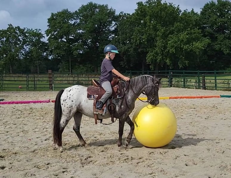 Onze lieve Puzzle is de kinderpony bij uitstek. Ze heeft de looks en het karakter. Ze is bij ons geboren en niks is haar te gek. Super geduldig en nergens van onder de indruk. Ze heeft met onze zoon al een hele hoop plezier beleefd. Onze zoon heeft een voorkeur voor western rijden, maar volgt ook gewoon wekelijks de dressuurles op de ponyclub. Dus trailerrijden is voor haar de normaalste zaak van de wereld. Wij hebben ook al met haar in het tuig geoefend en dat doet ze ook braaf. Ze is zelfs al eens mee op een western wedstrijdje geweest, maar zou ook voor dressuur, mennen of springen geschikt kunnen zijn. Haar vader komt uit een bekende Engelse springsport ponylijn. Op buitenrit is zij heel braaf en kan zowel voorop als achteraan. We vinden het echt heel erg jammer dat we moeten kiezen, maar omdat we haar moeder ook nog hebben zijn 2 pony's gewoon te veel voor mijn zoon. Puzzle verdient het om een eigen ruitertje te krijgen om zo nog veel meer avonturen te gaan beleven!