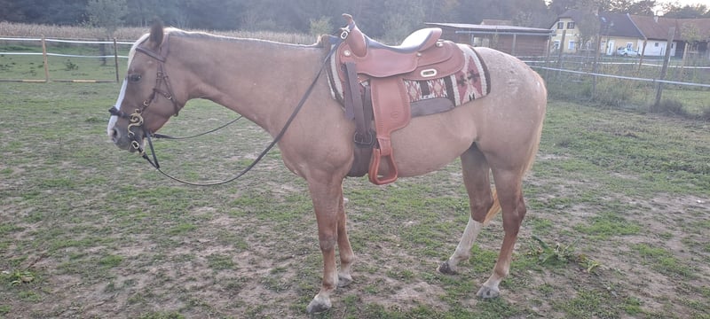 I am selling my 5-year-old broodmare. She has full papers and is already backed in all three gaits. She is confident in the terrain; I have taken her along on rides since she was a foal as a companion horse. She is familiar with cars, cyclists, trucks, tractors, trains, and other traffic. Stella is very affectionate, but due to her age and training level, she is only suitable for an experienced rider. She can certainly be retrained for English riding, as she only knows the basics so far. Stella is available for a trial ride by appointment. She is herd-friendly and tends to be dominant, which may be because she is kept with an older gelding. Currently, she is kept in a paddock with a free-range stall. The price includes the saddle, which will be sold with her. An ultrasound examination can be arranged at the buyer’s expense. Feel free to contact me if you have any questions. I am also open to trading Stella for a gelding.
