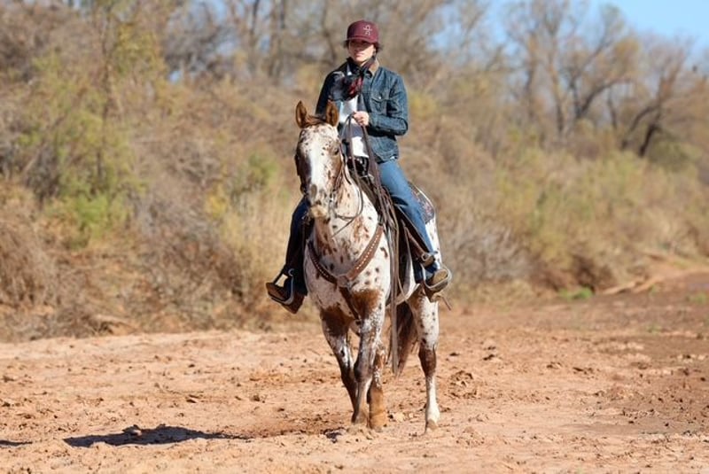 ⚜️𝐓𝐇𝐄 𝓗𝓮𝓻𝓲𝓽𝓪𝓰𝓮 𝐖𝐢𝐧𝐭𝐞𝐫 𝓒𝓵𝓪𝓼𝓼𝓲𝓬⚜️ Happening now thru MONDAY | DECEMBER 29th - Available EXCLUSIVELY on HorseBid's website! For more details and to register visit: www.Horsebid.com CONSIGNOR CONTACT: Dolago Performance Horses 860-942-0623 LOCATION: Perry, OK BREED: Appaloosa REGISTERED: Yes REGISTERED NAME: ALITA RED SUNSHINE COLOR: Appaloosa HEIGHT: 14.3 AGE: 6 GENDER: Mare Holly is a beautiful appaloosa mare with tons of chrome, eye appeal, and class. She’s the kind that turns heads everywhere she goes and backs it up with a great mind and a solid foundation. Holly has been going well in the roping pen and has been hauled to jackpots, where she shows plenty of rate, a big stop, and the ability to read cattle. She’s athletic, responsive, and has a lot of try, making her fun to ride and easy to get along with. Holly is a truly well rounded mare that has been ridden both English and western. We’ve recently started her over fences and she’s taken right to it, showing a willing attitude and seeming to genuinely enjoy jumping. She’s also been patterned on the barrels and poles, giving her a solid start for someone wanting a versatile performance prospect or an all around using horse. Outside of the arena, Holly really shines. She’s excellent on the trail and is just as comfortable riding out alone as she is in a group. She crosses water, logs, bridges, and other trail obstacles with no hesitation and takes everything in stride. She’s confident in new environments and stays level headed whether you’re riding at home or hauling her somewhere new. Holly has a one hand neck rein, has a smooth lope with pretty, balanced circles, and is soft in the bridle. She’s been exposed to a variety of situations and handles it all with a great attitude. Whether you’re looking for a rope horse, a ranch style all around, a fun jackpot horse, or something you can switch gears with and enjoy English, western, or trail riding, Holly checks a lot of boxes.