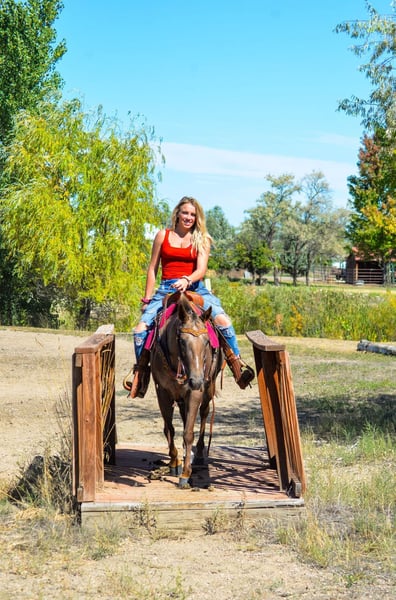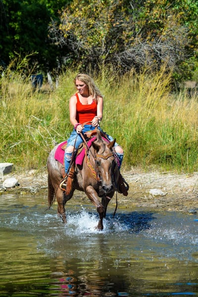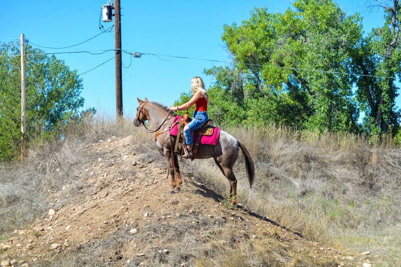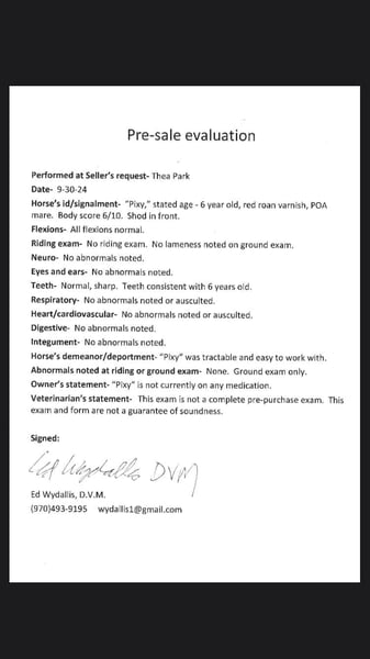 ONLINE AUCTION Place your bids at www.PlatinumEquineAuction.com Starting Bid $3500 Auction ends December 8th, 2024 Need a new saddle? Check out White Rock Saddles on our website or Facebook! Pixie is a go getter!! She is a 13.2H, 6 year old mare that is sweet, kind, honest and absolutely loves her job!! I have never seen a pony that loves to work like this one, you can take her into the mountains for a day of work and she’ll come back still ready for whatever you throw at her. Pixie is surefooted and as bombproof as they come in town! She has seen crowds, bikes, strollers, bands, dogs etc! She has been ridden through the coffee drive thru on occasion and absolutely loves any outing you take her on! Pixie has been through the gymkhana patterns, knows western pleasure and is started on hunter jumper and the start of some dressage. She has an amazing tuck and her athleticism is unmatched. She is a fancy mover with a beautiful walk,jog, lope and a very pretty headset/collection. She has a sliding stop and the start to a neckrein. This pony is not scared of tarps, bags, flags etc! She would make an awesome drill team mount. Pixie is also safe for young riders and is a great teacher as she has never bucked, bolted, reared or had any funny business! She is the perfect size for kids and small adults to ride! Pixie loves water, loads easily, great for the vet and farrier and will stand tied all day. Come check this sweet girl out! Located in Fort Collins, CO. Contact Dynamite Horses Thea 970-632-3644 with any questions. ONLINE AUCTION Place your bids at www.PlatinumEquineAuction.com Starting Bid $3500 Auction ends December 8th, 2024 Need a new saddle? Check out White Rock Saddles on our website or Facebook!