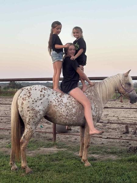 ONLINE AUCTION Place your bids at www.PlatinumEquineAuction.com Starting Bid $3500 Auction ends August 3rd, 2025 Need a new saddle? Check out White Rock Saddles on our website or Facebook Barbie is a 7-year-old mare with the kindest heart and the safest mind — the kind you wish you had ten of. Gentle, quiet, and unbelievably sweet, she has taken care of my entire family and countless lesson kids of all ages. Barbie is the ultimate confidence booster and an absolute dream on the trail — point and go, whether you’re riding alone or with a group. She handles any terrain, crosses water, and has been on multiple overnight camping trips, always traffic safe and unfazed. She rides bareback, double, and even triple without a fuss, making her the go-to horse for anyone needing reliability and safety. Barbie has been lightly started on breakaway roping and has helped push cattle around the farm. Best of all, she doesn’t need to be ridden every day — whether it’s once a week or once a month, she’s always the same trustworthy horse. She is 100% sound, stands patiently for grooming, bathing, and the farrier, hauls like a pro, and ties quietly to the trailer or picket line. With her one-of-a-kind looks and a golden mind to match, Barbie is truly a rare find. We’d love to have you come test ride Barbie and see just how special she is. We’re located in Princeton, Missouri — feel free to call or text Heather Stark 660-953-1476 to set up a time. ONLINE AUCTION Place your bids at www.PlatinumEquineAuction.com Starting Bid $3500 Auction ends August 3rd, 2025 Need a new saddle? Check out White Rock Saddles on our website or Facebook