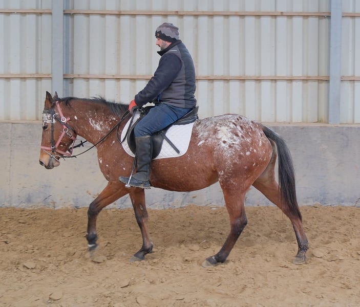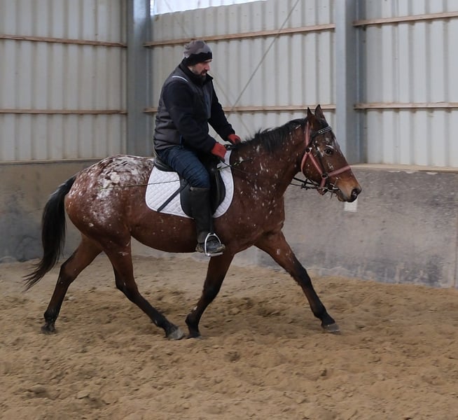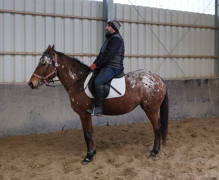 Eenvoudig en probleemloos te rijden merrie, braaf in de omgang en gemakkelijk in gebruik. Veilig in het verkeer en op het terrein. 9 jaar oud, 1,54 m hoog. Bij interesse graag bellen, geen e-mail! Geen garantie op eventuele fouten in de beschrijving! Tel.: 0173-3843407 Omdat het om een levend dier gaat, zijn dit subjectieve indrukken van de aanbieder en geen gegarandeerde eigenschappen van het paard! Altijd mooie rij- en vrijetijdspferden, evenals nieuwe koetsen van diverse modellen, voordelig te koop. Adres stal: 99628 Buttstädt, Oberwendenstraße 39
