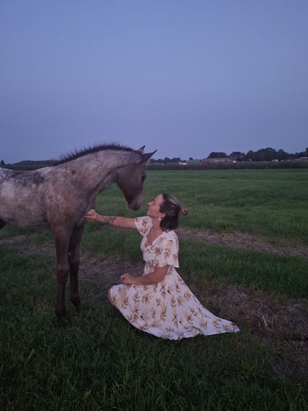 Pouliche à vendre / Jument fillette en coloration spéciale Je cherche une nouvelle famille pour ma pouliche après le sevrage. Amira est née le 26/05/2025. Sa mère est une appaloosa-mix (environ 1,55 m). Son père (non inscrit) est un Holsteiner (Cocosinni / environ 1,71 m). J'ai acheté la jument sans connaître sa gestation, je ne possède donc pas de certificat de saillie. Les informations concernant le père proviennent de l'ancienne propriétaire. Amira est une pouliche élégante avec de longues jambes remarquables. Sa coloration spéciale lui vient de sa mère et en fait une véritable attraction. Elle apprend le vocabulaire de base, se promène avec sa mère (même en bord de route). Elle a déjà rencontré le maréchal-ferrant et a même expérimenté un traitement osteopathique doux lorsqu'elle accompagnait sa mère. Cette jeune dame élégante sait se présenter, elle est polie dans ses interactions, mais doit aussi apprendre à poser ses limites. Elle est d'abord un peu méfiante envers les étrangers, mais sa curiosité prend rapidement le dessus. Je cherche une famille qui pourra offrir à Amira un environnement idéal pour son avenir. N'hésitez pas à me contacter si vous avez des questions.