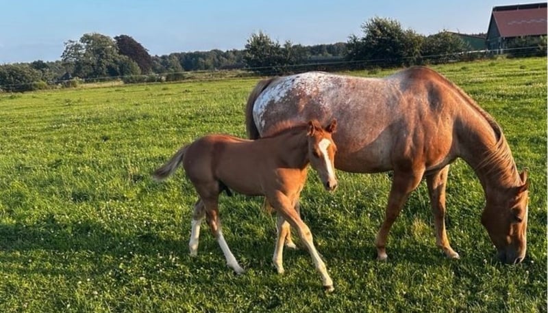This beautiful and correctly built colt may move to a loving home starting in December. He has been raised appropriately in a mixed herd on a large pasture, lives 24/7 in an open stable, and has been regularly dewormed. Bob is likely to develop the rare varnish roan coat color, as his first stichelhaare are already visible. The American registration papers and the Epass from the ApHCG are currently being processed. He is 5-panel n/n through his parents. He is expected to reach an approximate height of 16.1 hh. Location: Northern Germany
