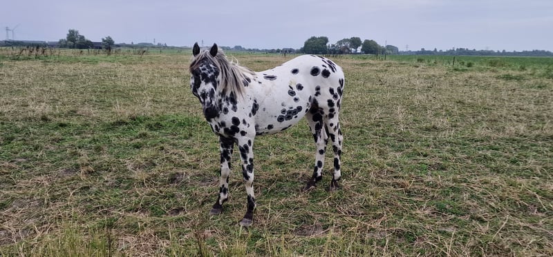 Dit paard steelt de show met zijn uitstraling en geweldige beweging. Uit de beste Nederlandse appaloosa bloedlijnen: Vader Nederlands 1e Premiekampioen Peru's First Class (met veel KWPN-bloed, zoals Krack C en Jazz) Moeder Ster merrie, reserve kampioen Moeders Vader 5-voudig Nederlands Kampioen Palousa Convenance (zijn vader is Gibraldi, de grote zwarte Grand Prix hengst die naar de Wereldbekerfinale ging met Edward Gall in Las Vegas) Heel lief en liefdevol karakter, een beetje verlegen. Kan aan een halster worden gereden, maar is nog groen in training. Wordt altijd in een groep jonge hengsten gehouden, met mensen om zich heen. Veel vrije beweging in de wei. Hij is nu op zoek naar een nieuwe eigenaar die met hem wil werken. Hoewel zijn moeder ook dressuurmatig gefokt is, houdt ze ook van springen, dus ik verwacht dat dit paard ook allround ingezet kan worden. Hij is een showman, hij is geweldig voor de camera en steelt de show met zijn indrukwekkende uitstraling. Ook andere jonge appaloosa paarden en pony's te koop.