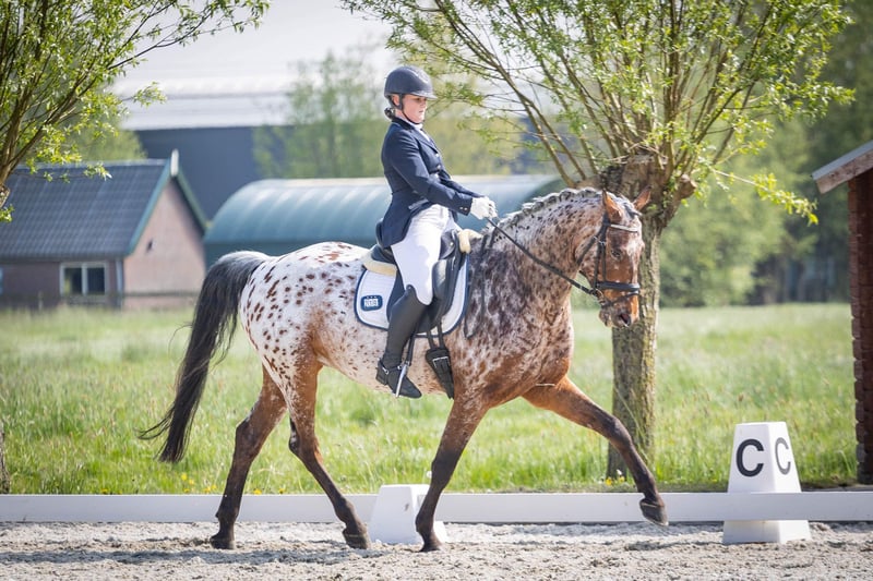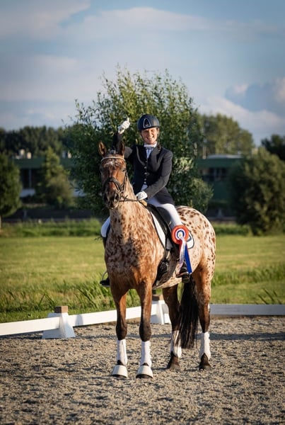 *Te koop* Een echte eyecatcher met een geweldig karakter en goede kwaliteiten! Ben jij op zoek naar een bijzondere verschijning met een hart van goud, die ook nog eens over goede kwaliteiten beschikt, dan is Jack Sparrow hét paard voor jou! Jack Sparrow is een Appaloosa ruin van 10 jaar oud en is 1.69 m hoog. Momenteel is hij Z1-geklasseerd. Ik heb Jack Sparrow als tweejarige van de fokker gekocht, hem in alle rust zelf zadelmak gemaakt en met veel plezier opgeleid tot Z-niveau. Op wedstrijd is hij een echte eyecatcher die graag de show steelt, met een gemiddelde score van 65%. Tijdens het rijden is Jack erg werkwillig en fijn aan de hulpen. Hij is niet geschikt voor de absolute beginner, maar wel voor iemand die al enige ervaring heeft. Ook voor overgang van pony naar paard zou hij ook heel geschikt zijn. Jack heeft een hart van goud en houdt van knuffelen! Door zijn sociale karakter geniet hij er enorm van om met andere paarden in de wei of op stal te staan. Jack is: * Correct geënt/ontwormd/tandartscontrole * Braaf bij de hoefsmid * Gemakkelijk te laden en is braaf op transport * Braaf tijdens het scheren en toiletteren In het voorjaar ben ik bevallen van een zoontje. Helaas heb ik hierdoor minder tijd om al mijn paarden de zorg en aandacht te geven die ze verdienen. Hierdoor moet ik het moeilijke besluit nemen om een nieuw gouden huisje voor hem te zoeken. Jack Sparrow is klinisch en röntgenologisch goedgekeurd. Hij heeft röntgenologisch een geringe bemerking maar dat is acceptabel voor gebruik, aldus de dierenarts. Overkeuren toegestaan (kosten koper). For Sale: Jack Sparrow A true eye-catcher with a wonderful character and great qualities! If you're looking for a special horse with a heart of gold and great skills, then Jack Sparrow is the one for you! Jack Sparrow is a 10-year-old Appaloosa gelding who is 1.69 m tall. He is currently Z1-classified in dressage. I bought Jack Sparrow directly from his breeder when he was two years old. I've taken my time to train him myself and have enjoyed bringing him up to Z-level. In competition, he's a real eye-catcher who loves to steal the show, with an average score of 65%. When you ride him, Jack is very willing to work and is responsive to the aids. He is not suitable for a total beginner, but he would be a great fit for someone with some experience. He would also be perfect for someone transitioning from a pony to a horse. Jack has a heart of gold and loves to cuddle! Because of his social nature, he really enjoys being out in the pasture and in the stable with other horses. Jack is: * Up to date on all vaccinations, deworming, and dental checks * Good with the farrier * Easy to load and well-behaved during transport * Good during grooming and clipping This spring, I gave birth to a son. Unfortunately, I now have less time to give all my horses the care and attention they deserve. This has led me to the difficult decision to find him a new, loving home. Jack Sparrow has been approved on both clinical and radiographic veterinary exams. He has a minor radiographic finding that is acceptable for use, according to the vet. A new veterinary examination is allowed (at the buyer's expense).