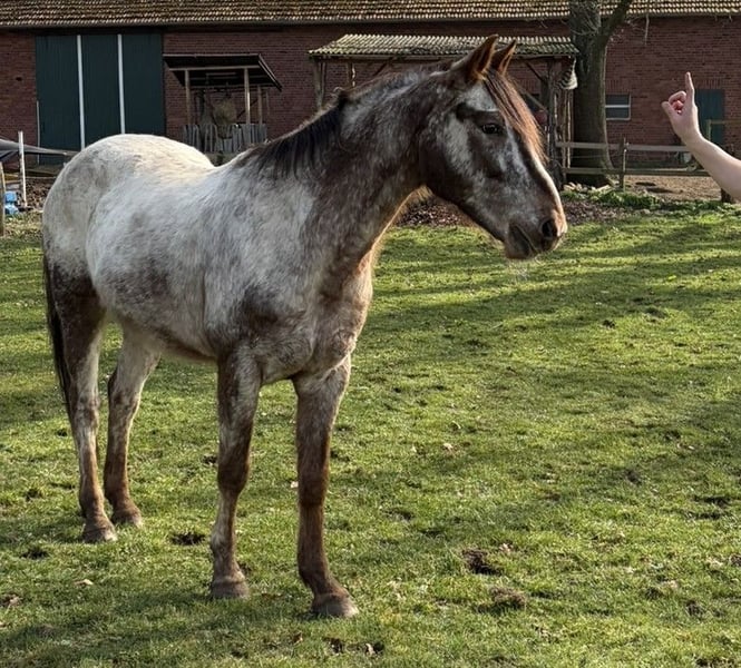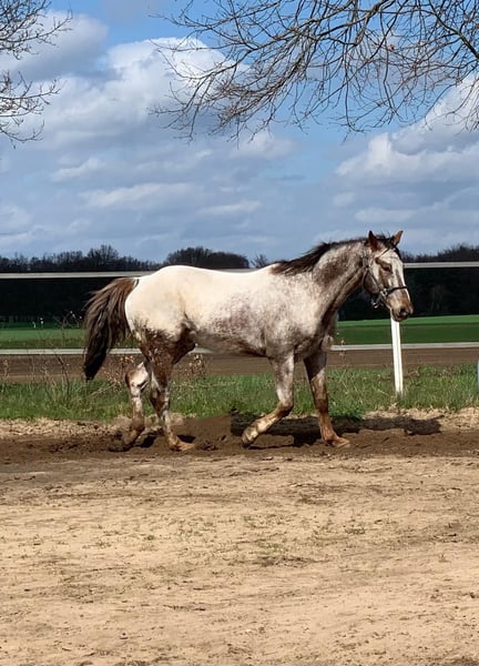 Verkaufe Appaloosa Wallach mit 158 cm Stockmaß. Sehr Menschenbezogen und lieb im Umgang. Trittsicher und unerschrocken im Gelände mit einem guten Schritttempo. Er ist 14 Jahre alt, geimpft, entwurmt, war beim Zahnarzt und natürlich regelmäßig beim Schmied. Das Pferd braucht eine konsequente Führung und ist daher kein Anfängerpferd! Wenn das Interesse geweckt wurde, freuen wir uns auf eure Rückmeldung.
