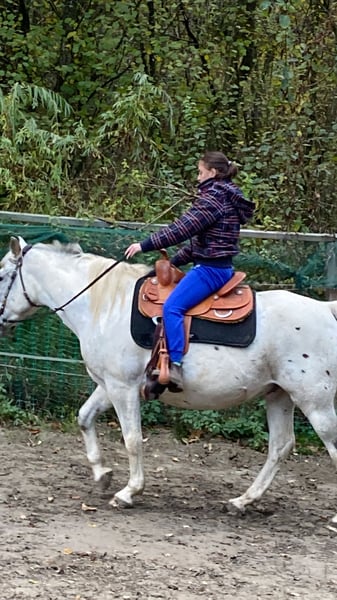 Appaloosa - Huzulenmix als bedingt reitbarer Beisteller zu verkaufen. Er ist der ideale Partner für entspannte Ausritte, wenn weitere Pferde mit dabei sind, mag er es auch mal flotter. Er liebt Bodenarbeit und mag gerne am Mähnenansatz gekrault werden, ansonsten ist er eher nicht so der Kuscheltyp.. Als Führpferd mit Kindern oder Erwachsenen drauf macht er einen guten Job. Milow hat momentan Sehnenbeschwerden und braucht wegen Hohlräumen an den Hinterhufen regelmäßig Hufpflege. Kleinere Ausritte sind trotzdem möglich. Milow ist ranghoch, in Gesellschaft mit größeren Pferden ist dies aber kein Problem. Er sollte im Offenstall stehen, in der Box wird ihm schnell langweilig. Wir wünschen uns für ihn einen guten Endplatz, der Verkauf erfolgt wegen Bestandreduzierung.