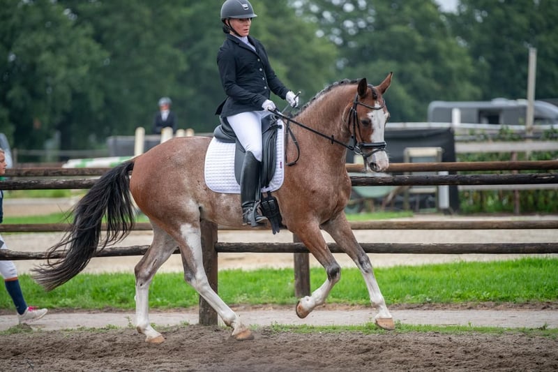 Deze ruin heeft Z dressuur gelopen en maakt ook een nette sprong, waardoor hij veelzijdig inzetbaar is. Het is eerder een paard waar je wat aan moet rijden dan dat hij scherp of sensibel is. Hij is braaf buiten tijdens het rijden en is makkelijk te laden op de trailer.