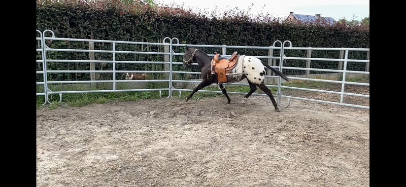Deze ruin heeft een zeer zacht karakter en is mens gericht. Hij is prachtig gebouwd en super mooi gevlekt. 5 panel N/N Hij is 2.5 jaar oud klaar om zadelmak te maken.