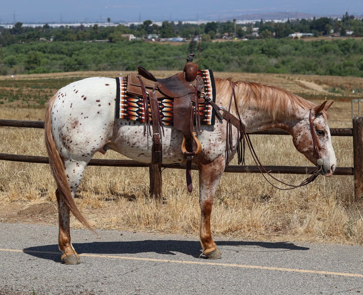 ▪️▫️◾️𝐭𝐡𝐞 𝑴𝒂𝒚 𝐒𝐞𝐥𝐞𝐜𝐭◾️▫️▪️ Happening now thru MONDAY | MAY 4th - Available EXCLUSIVELY on HorseBid's website! For more details and to register visit: www.Horsebid.com CONSIGNOR CONTACT: Crazy G Ranch 951-531-4346 LOCATION: Norco, CA BREED: Appaloosa REGISTERED: Yes REGISTERED NAME: Sleepy COLOR: Red and white HEIGHT: 15.3 AGE: 4 GENDER: Gelding Appaloosa 2022 Gelding – “Tumbalo” Tumbalo is a handsome 2022 Appaloosa gelding with the looks, breeding, and mind to make someone an exceptional all-around partner. He is a great family trail horse with a gentle disposition and is also fancy broke in the arena. Tumbalo is the kind that is easy to enjoy. He is quiet, willing, and level-headed, making him a fun and dependable ride both out on the trail and in the arena. He has a soft way of going, a kind personality, and the versatility to fit a variety of riders. He is sired by the 1.2 million dollar pleasure horse Too Sleepy To Zip, giving him standout pedigree to go with his good mind and eye-catching presence. If you’re looking for a young gelding with talent, style, and a family-friendly attitude, Tumbalo is one to watch.