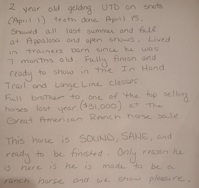 For Sale: Beautiful 2021 Appaloosa Gelding Gunner (Hez Just Kidding) Is a 2021 (4 year old) registered Dun appaloosa Gelding. He stands at 15.3. He has extremely good bloodlines his Sire is Kid Kelo and his Grand Sires are Kelo Connects and Rockin Image (Pictured). Was showed a lot when he was 2 but hasn't been since. I have done some training with him and I did ride him quit a bit In the Summer then I got busy and haven't done much riding since. He learns extremely easy and is incredibly smart. He is a super sweet horse and loves people. Never have had any problems with him kicking, biting, catching him or loading him. He bucked when I rode him for one of the first times but hasn't bucked since. He is definitely ridable but definitely needs work. I grew up with horses and he is by far the smartest horse we have ever owned. I would definitely keep him but I can't give him the time he deserves. He would make someone an excellent horse. Located in LaOtto,IN (near Fort Wayne). For price and more information please feel free to call or text me at 260-318-2857 or you can PM me.