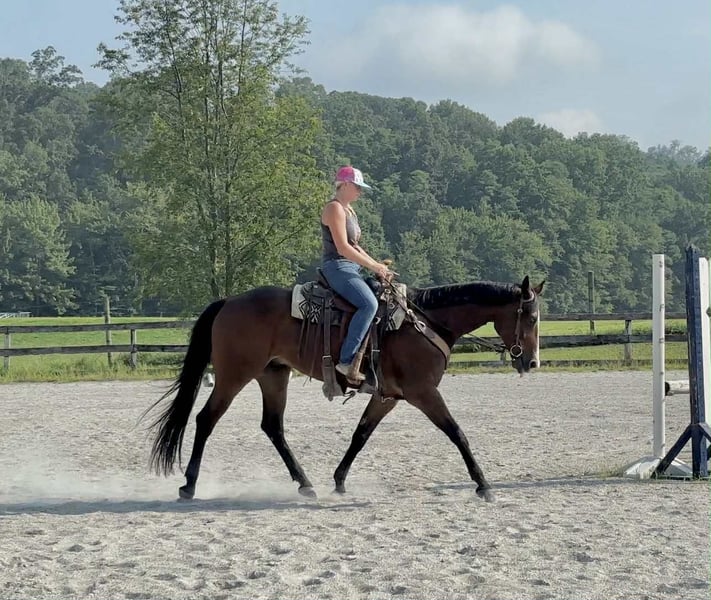 ⭐️ 𝐀𝐔𝐆𝐔𝐒𝐓 𝓐𝓵𝓵 𝓢𝓽𝓪𝓻 𝓛𝓲𝓷𝓮𝓾𝓹 ⭐️ Happening now thru MONDAY | AUGUST 25th - Available EXCLUSIVELY on HorseBid's website! For more details and to register visit: www.Horsebid.com CONSIGNOR CONTACT: Triple R Horses 610-806-2613 LOCATION: New Holland PA BREED: Appaloosa REGISTERED: Yes REGISTERED NAME: Cowboys N Bullets COLOR: Bay HEIGHT: 16.1 AGE: 5 GENDER: Gelding “Cowboys N Bullets” aka “Harlan” is a 5yr old, 16.1hh, registered Appaloosa gelding. Harlan is a super sweet, docile, laid back gelding, who absolutely loves trail riding and would make a great husband horse! Harlan has a very kind heart, and loves a relaxing adventure out on the trails! He will also dabble in ring work as well, he is safe, and has an old soul. On the trails, Harlan will lead, follow, go out alone and in groups. He is safe for anyone to go hit the trails with and he takes care of his rider. Harlan crosses logs, rocks, water, he is traffic safe, doesn’t care about bikes, wildlife, dogs, etc. He can take a joke and makes for a relaxing ride. Drop the reins and let Harlan follow the group, he will take care of you. Harlan will jog and lope out on the trails and drop back down to a relaxing walk right after. He is brave and willing, he will take the lead and show the way for the group. Harlan would make a great camping partner as well, he stands tied quietly and loves to explore! Whether you, your husband, your kid, or your grandma want to go out and have fun the trails, Harlan will take great care of you! Harlan has smooth, rhythmic, gaits. His lope is very lofty; and very comfortable. I would consider Harlan more of a push ride, yet he will move out when asked without a crop or spurs. He moves off of leg nicely, on the trails and in the ring. He is also doing well with neck reining. Harlan backs up very easily, and will pivot both ways. But even though he has “buttons”, his aids are still beginner and user friendly, making him safe enough for a kid, a husband, etc. In the ring, Harlan will walk, jog, trot, lope, canter, knows his leads, and is a very simple guy to ride. He will ride on the buckle, or collected. He listens well to voice commands, and will ride off of your seat. He rides in a simple snaffle, you could ride him in a halter and lead rope, I even rode him with out a bridle. He is gentle all around. I have lightly introduced Harlan to fences and he took right to it. He is still green and learning over fences but he has been very honest and does a good job. Harlan really likes to please his rider and he is very intelligent. In the barn, Harlan is very easy to work around. He is safe for kids and beginners to work with. He has very good ground manners. The best word to describe this boy is “docile”. He doesn’t mind dogs running all over the place. Harlan stands well on the cross ties to be groomed, bathed, tacked, etc. He is good for the vet and farrier. Harlan is an easy keeper with no maintenance or supplements. When left in his stall for long periods of time, he will mildly crib. It’s usually when he runs out of hay, or it’s been a long day. I have not witnessed Harlan cribbing at all while turned out. Other than that, he has no other bad habits. Harlan is a babysitter in the pasture, he is super drama free and loves all horses. He currently lives with mares and geldings and stays out of the way. I wouldn’t call him a low man, just doesn’t like any trouble. He is easy to catch and will greet you at the gate. Harlan truly has an old soul, he is very adored here as he is safe for anyone to play with. He is so easy to have around and has been such a joy to work with. He is always game for whatever I put him to that day. He does not have to be in a routine, and he has been a tack up and go type of guy. Harlan will self load into the trailer, trailers great, and ties to the trailer to get ready. This guy would make the perfect family horse, or all around partner! For more information on Harlan, please don’t hesitate to reach out! Shipping can be arranged anywhere!