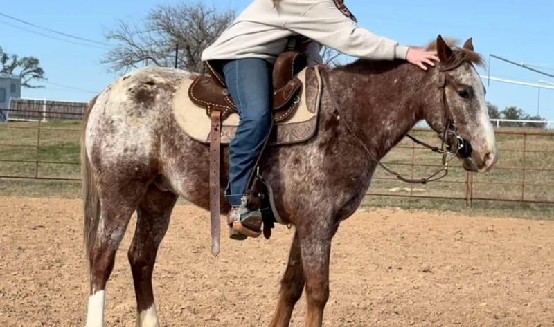 ONLINE AUCTION Place your bids at www.PlatinumEquineAuction.com Starting Bid $3500 Auction ends February 16th, 2025 Need a new saddle? Check out White Rock Saddles on our website or Facebook! Bambino aka “Bamb” is a 13.3H, 5 yr old Appaloosa gelding. Bamb is the cutest little step up pony for a handy youth or adult looking for something COMFY, small and fun! He is put together super correct and is one of the most handsome little app ponies we’ve ever represented! He has spent the last couple years as a handy kid playday horse, once they were ready for bigger performance horses, he moved on to a trail pony for a younger adult lady! Not many ponies have the handle this guy does! He’s broke like a seasoned big horse, very light to ride around, one hand broke and stops excellent! Bamb is EXTREMELY comfortable and has very floaty gaits! With a little more training, he’d easily make a little breakaway / rope horse prospect as he naturally wants to stop! He’d also be the perfect little rodeo horse for the handier kids wanting something fun and athletic!! Bambino goes the speed you ask, when you ask of him and is easy to ride and get along with. He’ll walk through water, and stays quiet on trails and in the arena. He’s happy to do any job you put him to and will go all day if you need. Bamb is NOT your typical “hot” pint sized jar of fun. He is calm, cool and collected and will never go faster than you ask! He’s NOT a “blown up” playday pony by any means. He’s very respectful and only really wants to please. Many horses his size are yee yawed around on by kids and as a result are hot and fractious to ride. NOT Bamb! He’s been rode by very respectful, handy kids that have rode him correctly! Being that he’s only 5, we do suggest an experienced rider only due to the fact he is pretty handy and athletic! He loads, leads, bathes, ties good and is UTD on feet, teeth and coggins! You don’t want to miss this unique opportunity to own an extremely put together, gorgeous little app gelding! Watch his video and go to his website page northtexashorsecompany.com/bambino for more pictures and footage! Please call Blair with North Texas Horse Company for more info at 817-757-3046. We LOVE to talk about him! We are located in Weatherford, TX and can help arrange affordable shipping to anyone!! ONLINE AUCTION Place your bids at www.PlatinumEquineAuction.com Starting Bid $3500 Auction ends February 16th, 2025 Need a new saddle? Check out White Rock Saddles on our website or Facebook!