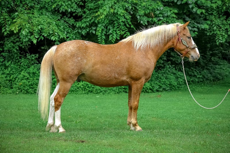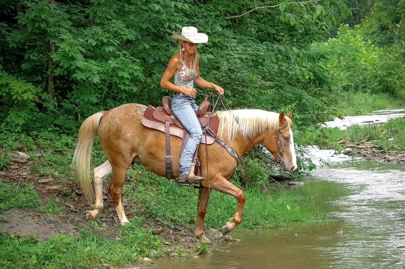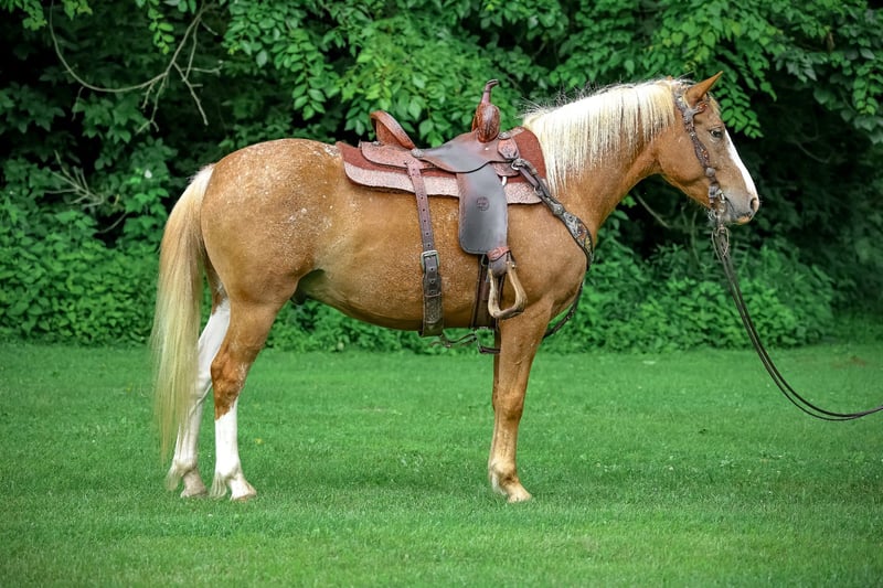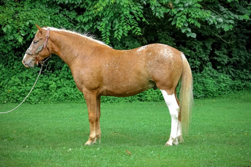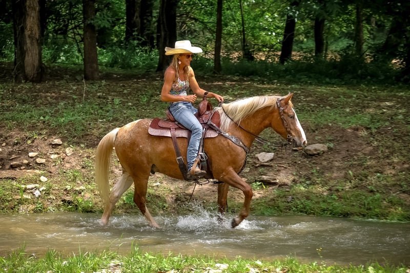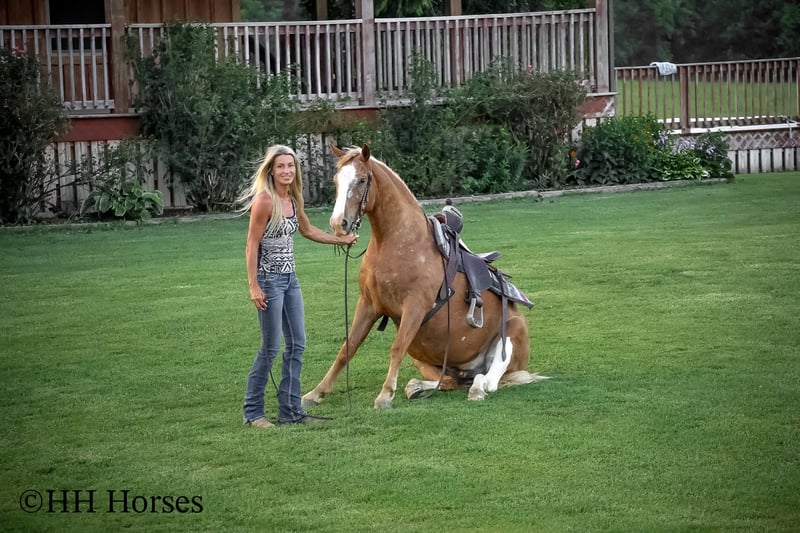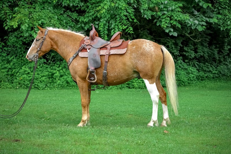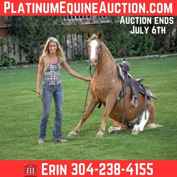ONLINE AUCTION Place your bids at www.PlatinumEquineAuction.com Starting Bid $3500 Auction ends July 6 2025 Need a new saddle? Check out White Rock Saddles on our website or Facebook! This is “DAILY DOUBLE”, a really unique, cute, well broke, and well trained PALOMINO APPALOOSA PAINT gelding. He is uniquely marked with a sprinkling of white over his rump and a high white stocking leg that makes him really stand out. This gelding has been hauled to many different states and trail ridden through lots of varied terrain. He will cross water, go up and down the steep embankments, and he is sure footed on the rocks. He is comfortable to ride with an easy to sit jog and a collected canter. He is also trained to lay down to mount and dismount. You can ask him to lay down while on his back or the ground. He has been in the arena and ridden English and Western. He will lope a nice circle without the confines of a pen and he catches his leads. He stops easily and has a nice one hand neck rein. He stands 14.1 hands tall and is 5 years old. This nice gelding is flashy, fun, and really stands out with his color and cool abilities. He walks out nicely on a loose rein and will not go any faster than what is asked of him. He is an easy keeper, he gets along well with other horses and has excellent ground manners. HH Horses Erin 304-238-4155 Located in Flemingsburg, KY. ONLINE AUCTION Place your bids at www.PlatinumEquineAuction.com Starting Bid $3500 Auction ends July 6 2025 Need a new saddle? Check out White Rock Saddles on our website or Facebook!