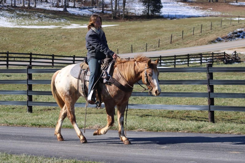 ONLINE AUCTION Place your bids at www.PlatinumEquineAuction.com Starting Bid $3500 Auction ends February 9th, 2025 Need a new saddle? Check out White Rock Saddles on our website or Facebook! Peanut is a 14.2 hand Appaloosa gelding that is built like a little tank! He has lots of conformation to him! Peanut is 6 years old! We have used this little horse out on the trails a ton. He is very laid back and loves the woods! He will go up and down the hills with no problems! He will play in the creek and will stand still while you’re out on the trail taking a break! Peanut has been ridden mostly by a 15 year old girl and she enjoys him very much! He will walk, trot, canter in an arena and he knows his leads! His canter is a little fast at first but he will slow down after the first minute or so! He loves to walk around gentle is his favorite speed but will get up and go fast when asked! He has been ridden around cattle as well! He has checked fences mostly but has also been used to gather cattle and load trucks! He does all the obstacles in the barn and has a lot of ride to him! He will neck rein, back up, and side pass when called upon! Peanut has also been ridden and handled by younger children quite a bit! We feel like peanut would be best suited for a rider that has some confidence because he has some buttons and is well broke! He is a super nice smaller gelding that is the right size for just about anyone! He does well kept in a stall or out on pasture! He is an easy keeper and stays fat year around! If you are looking for a gelding that is good size to get on and off of and that will get you noticed anywhere then he is your guy! We think he is the coolest colored and the most fun horse to ride in the barn! He is sound and has no vices! He is located in Sonora Ky! Feel free to call Clayton Ryan 270-766-2641 with any more questions or concerns! Buy with confidence on this unique horse! ONLINE AUCTION Place your bids at www.PlatinumEquineAuction.com Starting Bid $3500 Auction ends February 9th, 2025 Need a new saddle? Check out White Rock Saddles on our website or Facebook!