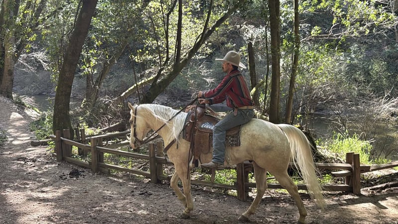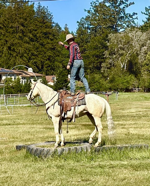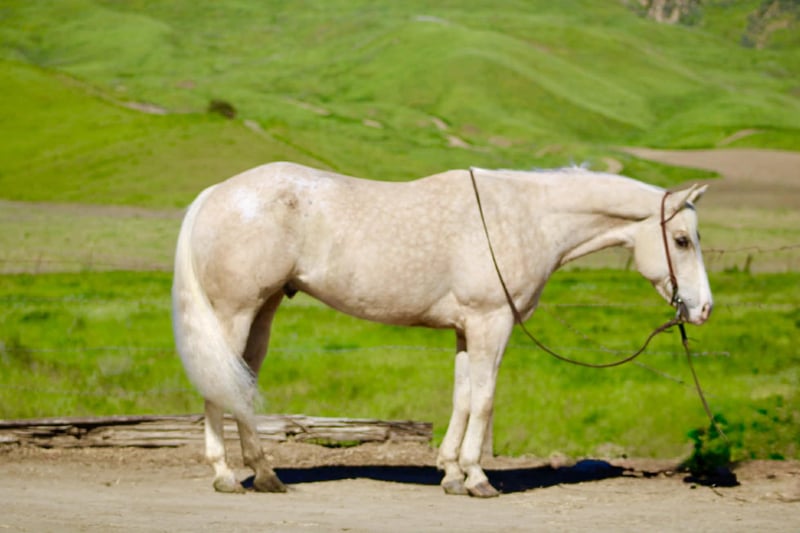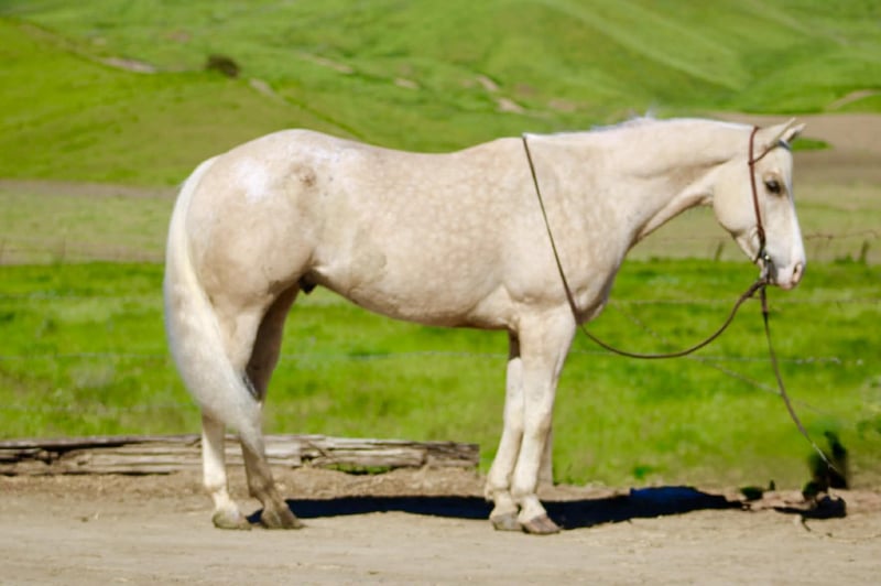 "AVAILABLE ON ONLINE HORSE AUCTION AT www DOT PlatinumEquineAuction DOT com BIDDING OPEN NOW thru SUNDAY | MARCH 29TH! *Final price will be determined on auction site* CONSIGNOR CONTACT INFO: Longhorn Ranch 831-537-1915 LOCATION: Paicines, CA BOUGIE 7-Year-Old Rare Palomino Snowflake Appaloosa Gelding • 15 Hands Some horses try hard to get noticed. Bougie doesn’t have to. With his rare palomino snowflake Appaloosa coat and sharp presence, he’s the kind that naturally catches an eye from across the pen. But once you saddle him up, it becomes clear Bougie is a whole lot more than just good looks. He is safe for all levels. Bougie is gentle to be around and simple to handle. He stands quiet to saddle, rides off easy, and carries himself with the kind of steady attitude that makes a horse enjoyable to own. Whether he’s ridden every day or given a little time off, he comes out the same honest horse each time. Out on the trail, Bougie has seen plenty of country. He’s been ridden through state parks and rough terrain where wildlife, water crossings, bridges, and uneven ground are just part of the ride. He is use to pedestrians,bikes and wildlife.He takes it all in stride and stays level-headed wherever you point him. He’s also comfortable around trail obstacles such as bridges, tarps, flags, and other obstacles, and rides quietly through town traffic with cars, trucks, and everyday commotion without losing his composure. In the arena, Bougie carries himself with a smooth, balanced way of going. He moves correctly through his transitions, has a nice stop, backs easily with light cues, and stays soft and responsive. Around the ranch, Bougie has been used to gather cattle, brand, and sort, working quiet and cooperative while he does his job. He has also been tracking the lead steer and is showing the kind of natural feel that could make him a very nice rope horse. Bougie is the kind of gelding you can take down the trail, go do a day’s work on the ranch, or enjoy riding in the arena. With his unique color, good mind, and steady way of going, he’s the kind of horse people enjoy owning. Good horses come in all colors… but it sure doesn’t hurt when one shows up looking like Bougie. Paicines, California Longhorn Ranch – Dina 831-537-1915 Nationwide shipping available