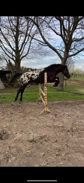 For sale: a stunning Appaloosa gelding, born in 2018. The black coat with distinctive markings makes him stand out, and his friendly, balanced temperament adds to his appeal. Standing at 16.1 hh, he is well-suited for a variety of disciplines. Whether for leisure riding, dressage, or small jumping competitions, this gelding shows great potential and eagerness to learn. He is healthy and well cared for. I am happy to provide more information and invite you for a personal impression.