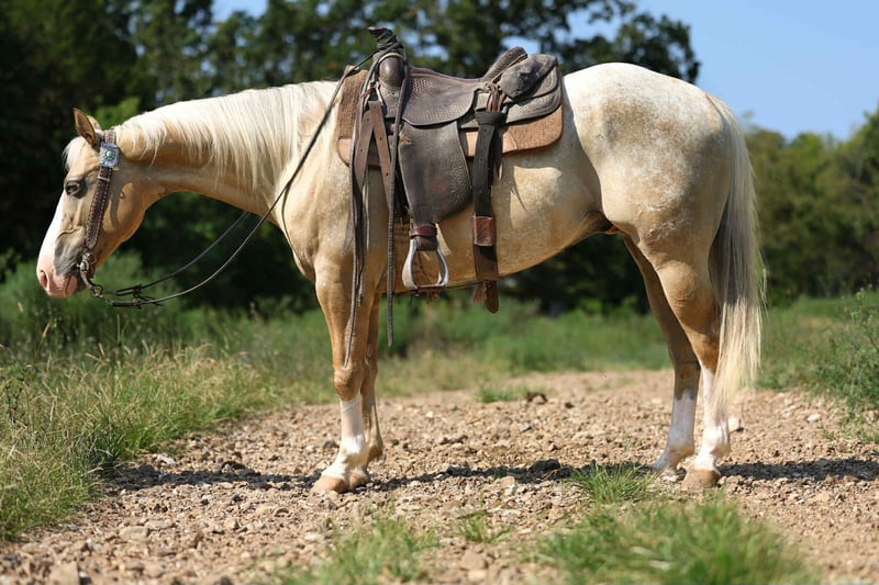 ONLINE AUCTION Place your bids at www.PlatinumEquineAuction.com Starting Bid $3500 Auction ends September 7th, 2025 Need a new saddle? Check out White Rock Saddles on our website or Facebook Meet Ricky Bobby! Introducing Ricky your palomino prince! A 7 year old grade POA Gelding. Ricky is the full all around package, standing 14.1 HH but built to last. Ricky has a beautiful confirmation, a good foot, clean legged, deep in the chest with a very nice hip. Ricky Bobby is everyone’s night in shining armor, he has the personality of a saint. Always the first to greet you at the gate, easy to catch awaiting whatever adventure you point him towards. Want to lead your kid around the yard? He’s solid. Trail ride through the trees, water, wildlife, vehicles? Ricky is going to take care of you every step of the way. Ricky is not only a joy to pleasure ride but is an athlete in and out of the arena. This young, athletic gelding has smooth lead departures, rides soft in the face and moves off your leg beautifully with a nice stop. Ricky has a true one hand neck rein, whether you’re asking him to lope circles or a nice spin he’s got you covered. Ricky is incredibly versatile, he’s gentle and quiet enough for the kids to take to play days or you can take him on a hard days work. This exceptional gelding has roped and doctored in the pasture and been used to push cattle at the sale barn and will go as long as you ask. Ricky sells 100% sound and sane. Call AM Equine Alexis 660-438 0306 for further questions. Located in Cole Camp, MO. ONLINE AUCTION Place your bids at www.PlatinumEquineAuction.com Starting Bid $3500 Auction ends September 7th, 2025 Need a new saddle? Check out White Rock Saddles on our website or Facebook
