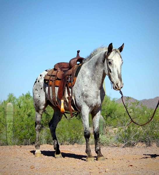 ONLINE AUCTION Place your bids at www.PlatinumEquineAuction.com Starting Bid $3500 Auction ends October 19th, 2025 Need a new saddle? Check out White Rock Saddles on our website or Facebook Popeye is ready to be your new best friend! This 8 year old Appaloosa gelding is friendly, kind and is always the first one to greet you at the gate. Popeye stands 14.2 with good bone and shape to him. While he lacks in a tail department, he makes up for it with his big heart and willingness to please! He is gentle and easy to get along with, without being a lazy boy. Popeye has a ground covering walk out on the trails and loves to go out for adventures. He’s not spooky and will cross anything you ask him to. He is comfortable around dogs, traffic, tractors, and loud noises and gets along well with other horses. He has been hauled around a few times to events for exposure and handles new environments with ease. Popeye has a nice handle in the arena and rides one handed or two, and has a good stop and turn around and back up. We have played around with him on the barrels a couple times now and he seems to really enjoy that as well! He would make a great horse for playdays or even be a great rope horse prospect. Popeye has wonderful ground manners, he stands tied, bathes, loads and hauls. He is well behaved for the farrier and is currently shod on all four. He is sound with no maintenance. Popeye wants to be someone’s best buddy, make him your number one and I’m sure he’ll move mountains for you! Located in Marana Arizona, and we are happy to help arrange shipping anywhere! Popeye will come with a current coggins and health certificate. Please feel free to call/text Claire Siebols anytime with questions about Popeye at 435-899-0508. ONLINE AUCTION Place your bids at www.PlatinumEquineAuction.com Starting Bid $3500 Auction ends October 19th, 2025 Need a new saddle? Check out White Rock Saddles on our website or Facebook