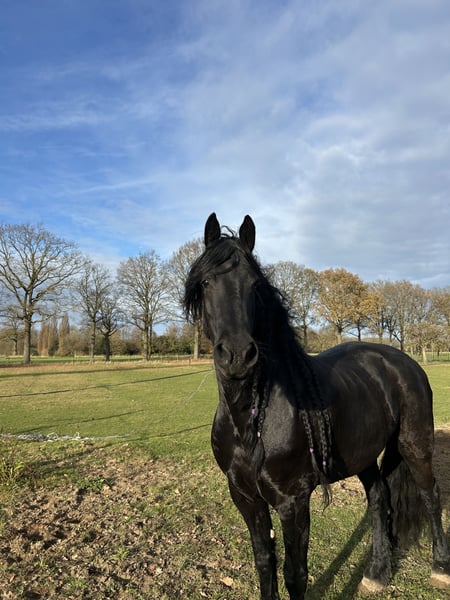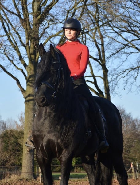 Te koop aangeboden: de prachtige Arabo-Fries merrie Jente. Gegevens: Naam: Jente Geslacht: Merrie Geboren: 20-06-2016 Vader: Wietse 462 Moeder: Thea J. Moedersvader: Yk Dark Danilo Stokmaat: ca. 1.68 m Over Jente: Jente is een mooie, rastypische merrie met een fijne afstamming en een elegante uitstraling. Ze is recreatief gereden, maar heeft de afgelopen weken wat minder training gehad vanwege tijdgebrek. Om deze reden is het belangrijk dat een nieuwe eigenaar haar rustig en correct weer oppakt. Jente is werkwillig, leergierig en prettig in de omgang. Ze heeft veel energie en is daarom minder geschikt voor een beginnende of onzekere ruiter. Ze heeft een ruiter nodig die duidelijk en consequent leiding geeft. Met de juiste begeleiding laat ze zich fijn rijden en toont ze haar kwaliteit. Daarnaast is Jente bekend met grondwerk en is ze academisch opgeleid, wat haar extra interessant maakt voor ruiters die hier verder mee willen werken. Jente is een eerlijk paard met veel potentie en zal nooit gemeen gedrag vertonen. Overig: Keuren toegestaan (kosten koper) Locatie: Gaanderen, Gelderland Voor meer informatie of filmpjes, stuur gerust een bericht.
