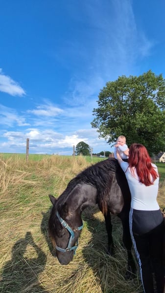 3- Jährige Stute, völlig roh aber offen für alles, lieb im Umgang, verspielt, Kinder saßen schon drauf, putzen und verwöhnen ist auch toll, sonst ROH !!!!!!! mit Temperament, im Anhänger schon gefahren, gehalten in gemischter Herde, Offenstall, Vater und Mutter vor Ort Keine Abgabe an Händler!!!!!!!
