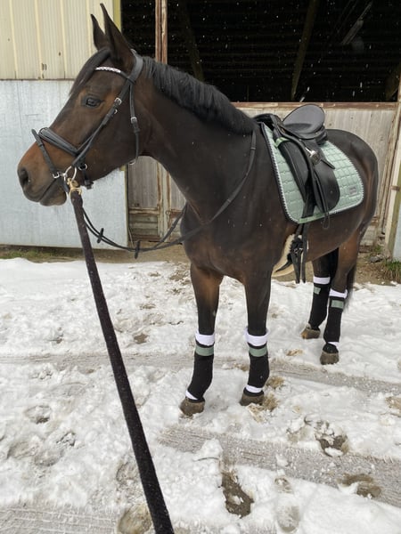 Alykessa è una giovane cavalla molto dolce e motivata, che si presenta con grande piacere nel quadrato di dressage, ma si diverte anche molto in bosco e su terreni vari. In gara si è dimostrata vincente fino alla classe di dressage LM ed è sempre affidabile anche in trasferta. Ha inoltre esperienza nella Working Equitation, disciplina in cui è stata già presentata a diverse competizioni. A malincuore, a causa di mancanza di tempo, Alykessa viene venduta e le auguriamo di trovare una nuova casa fantastica – motivo per cui si dà priorità alla disponibilità piuttosto che al prezzo! È abituata a diversi tipi di stalle, box con paddock, paddock all’aperto... per lei non rappresentano alcun problema, si adatta molto rapidamente. Su richiesta, anche con accessori completi, a un prezzo supplementare.