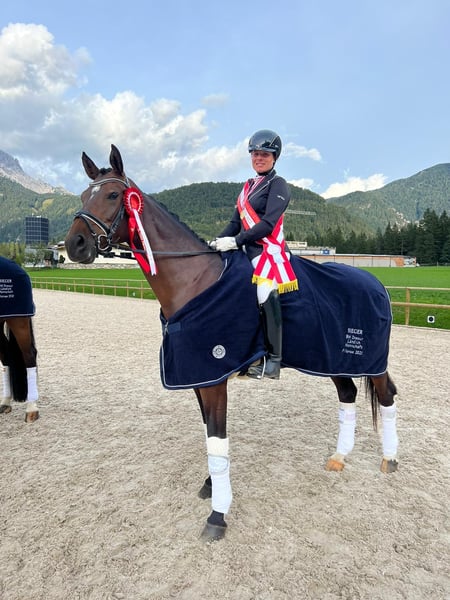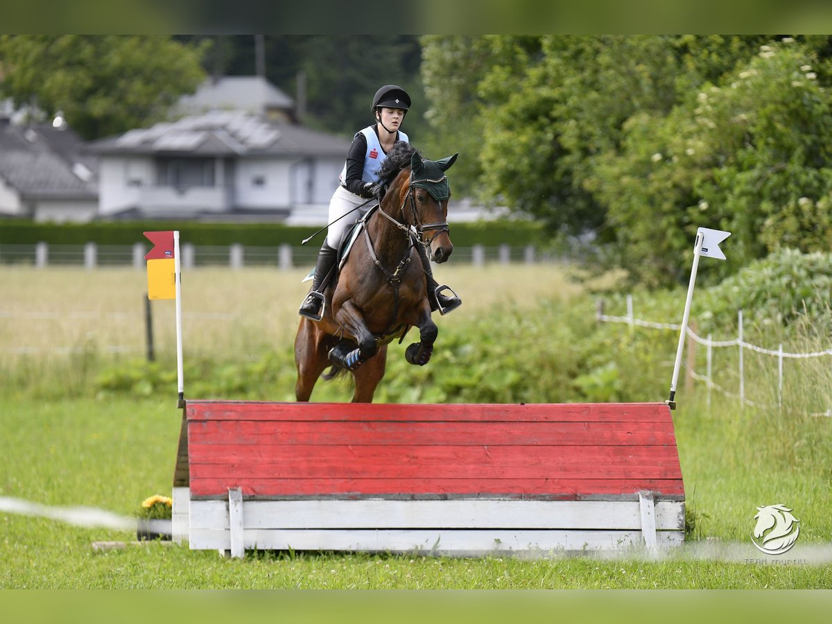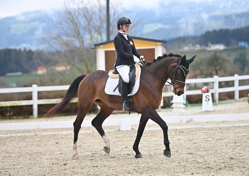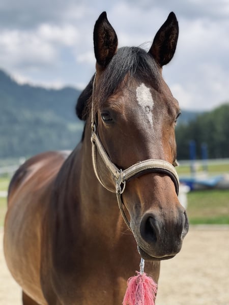 Ich suche für meine 10-jährige österr. Warmblut Stute (geb. 2016) mit gutem Springpotenzial und einem Stockmaß von ca. 1,65 m ein neues Zuhause. Felina kam 4-jährig zu mir und steht seitdem in einer großen gemischten Herde und manchmal nachts in der Box. Diese oder eine ähnliche Haltungsweise mit viel Auslauf wünsche ich mir weiterhin für sie. Sie wurde bereits auf mehreren Turnieren erfolgreich vorgestellt: div. Siege und Platzierungen in der Vielseitigkeit (A/ V100) (Landes- und Vizelandesmeister), Springen (bis 105), Dressur Kl. A (Bundesmeister Mannschaft). Sie verfügt über eine sehr gute Springqualität und zeigt hier großen Ehrgeiz. Sie hat eine hohe Grundkondition sowie gutes Go. Auch bei Ausritten ist sie recht unbeeindruckt und geht gerne vorne weg. Sie wurde letztes Jahr aufgrund von Zeitmangel nicht viel trainiert, ist jedoch seit Dezember in Beritt und selbst nach längerer Pause ist sie stets händelbar. Sie ist für ihr Alter sehr unverbraucht und durfte immer wieder Sportpausen genießen. Ich suche für sie einen liebevollen Platz, in dem sie weiter gefördert und wertgeschätzt wird. Platz vor Preis; wird aufgrund der längeren Trainingspause (aus Zeitmangel) und einem leichten Sommerekzem unter Wert abgegeben! Anfragen bzgl. weiterer Infos etc. bitte ausschließlich telefonisch unter 0664/4423041 Standort Steiermark/ Mühlen