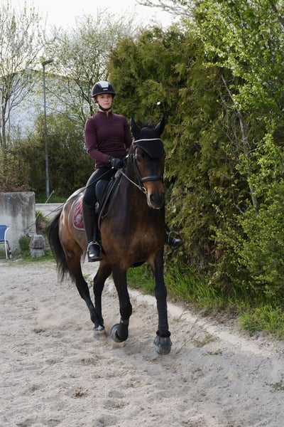 Alykessa is a very sweet 10-year-old Austrian Warmblood mare with a strong character, approximately 1.62 meters tall. She has been primarily trained in dressage but also enjoys regular rides in the forest and on varied terrain. She has competed successfully up to the medium level (LM) in dressage and is always reliable at competitions away from home. She has also participated several times in lead-rein classes. Additionally, she has experience in working equitation. She is familiar with and enjoys both solo and group rides. She has been occasionally jumped as a variety, and with active training, this skill could be further developed. Due to lack of time, we are selling Alykessa with a heavy heart and wish her a wonderful new home—hence, price is secondary to finding the right place for her. She is accustomed to various stable types: box stalls with paddock turnout, open stables, etc., and adapts very quickly. She is familiar with herds of mares as well as mixed groups. Tents and fixed stalls are no problem for her, making her suitable for competitions, trail rides, and similar activities. If desired, she can be sold with accessories at an additional cost. A health certificate (AKU) is available. We are happy to provide more information and videos upon serious interest! She has been in our care since she was 5 years old, initially as a riding pony for lease from the age of 3. Her previous owners, who raised her, are still personally known to us. We know her inside out.