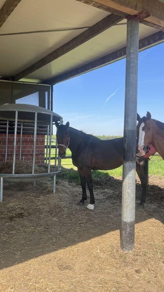 Zur Verfügung steht meine 13 Jährige (*2012), ca 168 große Österreichische Warmblut Stute Ri-H. Ri ist sehr menschenbezogen und verschmust. Vor dem Trensen möchte sie immer erst einmal kuscheln. Sie möchte dem Menschen immer gefallen und tut ihr bestes. Sie ist unerschrocken und kennt das Gelände inkl. spazieren/joggen gehen sehr gut, daher könnte ich sie mir auch gut als Handpferd beim ausreiten vorstellen. An der Longe macht sie sich auch gut. Sie kennt Doppellonge, lockeres longieren am Halfter aber auch ausgebundenes longieren. Im Winter kann sie dabei aber etwas spicy werden, wird dabei aber niemals böse! Dinge wie z.B Schreck-/Trick Training, Freispringen und Handarbeit kennt sie auch. Sie wird regelmäßig entwurmt und wurde bis Mitte 2025 gegen Tetanus und Influenza geimpft. Vorne trägt sie Eisen. Auf den Hänger geht sie nur mit verbundenen Augen, das klappt aber dann. Sie hat dabei keine Angst sondern ist einfach nur stur. Im Hänger selber steht sie stets ruhig Ri-H ist leider aufgrund der Diagnose Arthrose in den Halswirbeln,nicht mehr bzw. nur noch bedingt (Schrittausritte - Auf eigene Gefahr + Vertraglich geregelt) reitbar , da die (erneute) Sturz- gefahr einfach zu hoch ist. Diese wurde schon unterschiedlich versucht zu behandeln wie z.B durch Spritzen, was jedoch absolut nicht angeschlagen hat. Durch die Arthrose stolpert sie sehr häufig oder vertritt sich auf der Vorderhand. Außerdem zeigt sie dadurch leichte Taktunreinheiten welche aber nicht weiter schlimm sind. Bewegt werden muss sie jedoch genug da sie in den Hinterbeinen “Wassereinlagerungen” hat, die aber bei Bewegung nicht auffallen und sie keines Falls einschränken. Ebenso dreht sie die Hinterbeine beim Laufen zur Seite, dies schränkt sie aber auch nicht ein. Durch keinen der Befunde hat sie Schmerzen! Oder laufende Tierarzt Kosten. Generell war sie tierärztlich nie auffällig bei mir außer evtl. mal ein Einschuss durch eine Schramme o.ä am Bein. Berichte und Röngtenbilder sind vorhanden. Aufgrundlage dessen kann ich ihr leider nicht langfristig das bieten, was sie braucht. Am liebsten wäre mir Haltung auf einer Wiese/Offenstall als Beisteller o.ä. oder sonst auch Boxenhaltung nachts mit genug Auslauf, sozialen Kontakten und Bewegung. 24/7 Draußen Haltung kennt sie und ist auch verträglich mit anderen Pferden. Dabei sollte sie am liebsten in meiner Nähe bleiben aber falls sich was zu 100% passendes ergibt wäre eine größere Entfernung auch möglich. Auch als Zuchtstute könnte sie aufgrund ihrer Springmaniere und Abstammung von Clinton II sein. Sie war schonmal Zuchtstute und hatte bereits Fohlen. Zudem ist sie im Hauptstutbuch- Österreich registriert. Abgeben würde ich sie ab April, gegen volle Kostenübernahme. Genaueres kann jedoch persönlich geklärt werden. Keine Notabgabe. Besuchsrecht und Schutzvertrag sind ein muss. Wenn alles langfristig klappt ist ein Verkauf bzw. die Abgabe von ihr vorbehalten. Sie steht in 41564 Kaarst. Anfragen bitte hauptsächlich per Nachricht.