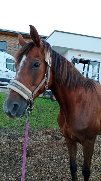 Österreichische Warmblut Stute Dunkelfuchs Queeny sucht ihren Menschen - jemand der Erfahrung mitbringt Meine Tochter 14 und Queeny finden nach 1,5 Jahren Arbeit nicht perfekt zusammen. Wir wünschen uns für sie einen routinierten Pferdemenschen. Sie will gefallen und täglich gearbeitet werden- da wir leider keinen Reitplatz haben - können wir ihr dies nicht bieten. Sie ist eingetragene Zuchtstute - hatte bis jetzt ein Fohlen - auf Grund ihrer tollen Dressur Abstammung auch für die Zucht interessant. Bei ernsthaftem Interesse gerne mehr!