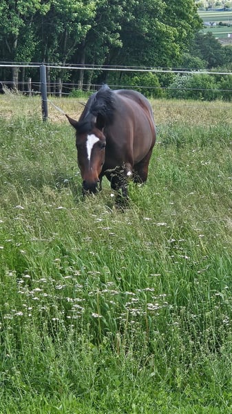 Verkaufe schöne Warmblut Stute, geritten und 2 spännig gefahren, Ausreiten in der Gruppe und alleine möglich,kein reines Anfängerpferd- Reiternadelniveau, bei stärkerer Belastung im Galopp Kehlkopfpfeifer,ansonsten gesund und fit. Platz vor Preis