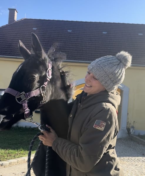 Se vende una prometedora yegua joven de la raza Caballo de Warmblood Austríaco. Esta elegante yegua negra, nacida en el año 2024, impresiona no solo por su apariencia moderna, sino también por su gran potencial en el deporte de la doma debido a su movimiento elástico y su excelente pedigree. Con una altura estimada de 170 cm, será ideal para jinetes ambiciosos que buscan una yegua talentosa en desarrollo. Esta joven dama ya muestra movimientos por encima de la media. Es dispuesta a aprender, atenta y tiene un temperamento equilibrado, lo que la convierte en una pareja ideal tanto para el futuro deporte de la doma como para la cría. Para más información y para concertar una cita para visitar, por favor contáctenos. Estamos deseando presentarle personalmente esta especial yegua de nuestra cría. Le pedimos que, para consultas y acuerdos de visita, se comunique exclusivamente por teléfono. ¡Su equipo de FG Caballos de Monta y Competición! TEL.: +4369919566354 +43 650 8411167