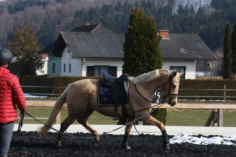 Die Stute wird aktuell schonend angeritten und zeigt sich dabei äußerst unkompliziert und lernwillig. Das Reitergewicht kennt sie bereits und meistert diese neuen Aufgaben mit einer bewundernswerten Gelassenheit.