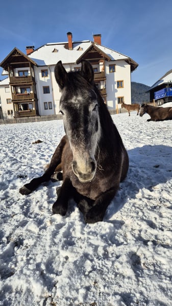 For sale is my lovely Austrian Warmblood mare, Freya (Diamant). She will likely shed a bit more coat as the season progresses. This little mare is nearly 4 years old and has spent her life in a herd on mountain pastures and meadows. She is currently approximately 16.1 hands tall and has a very sweet temperament. Due to an accident, I was unable to continue her training, so she is not yet backed but is familiar with the bridle. Freya is a truly well-behaved, friendly mare, low in the herd hierarchy, and very curious. She still needs a calm and confident handler to show her the world and give her time to settle. She is quick to learn and eager to cooperate. This is not a desperate sale and she will only be handed over to the best possible new owner! After a personal introduction between horse and handler, we can discuss further details. Please feel free to contact me via WhatsApp or message at 0650/5131579