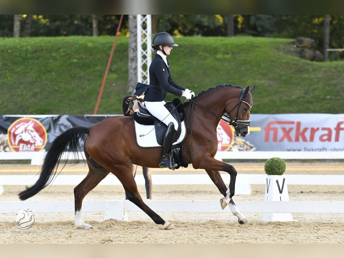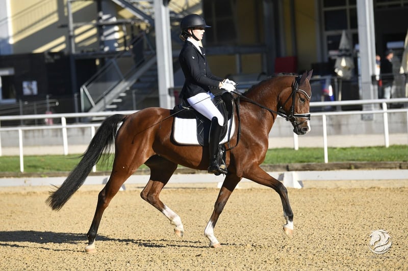 Stella wurde vierjährig angeritten und überzeugt seitdem durch ihre hervorragende Rittigkeit, Leistungsbereitschaft und ihren ausgeglichenen Charakter. Sie ist das ideale Pferd für Reiter, die einen zuverlässigen Partner mit Perspektive im gehobenen Dressursport suchen. Am Turnier präsentiert sie sich stets zuverlässig und punktet mit drei überdurchschnittlichen Grundgangarten. Im vergangenen Jahr konnte sie sich mehrfach in Dressurpferdeprüfungen der Klasse A platzieren und erhielt Teilnoten bis zu 9,0. Als besonderes Highlight erreichte sie beim AWÖ-Bundeschampionat das Finale der 4- bis 5-jähringen Dressurpferde. Aktuell wird sie behutsam und spielerisch auf die Anforderungen der Klasse L vorbereitet. Erfolge 2025: - OÖ Reitpferdechampionat Endnote 8,2; 4. Platz (Trab Tageshöchstnote 9,0) - AWÖ-Bundeschampionat: Reitpferdechampionat 4-jährig: Endnote 7,9 - 13. Platz Dressurpferdechampionat 4 & 5 jährig Kl. A (Finale): Endnote: 7,72 - 11. Platz