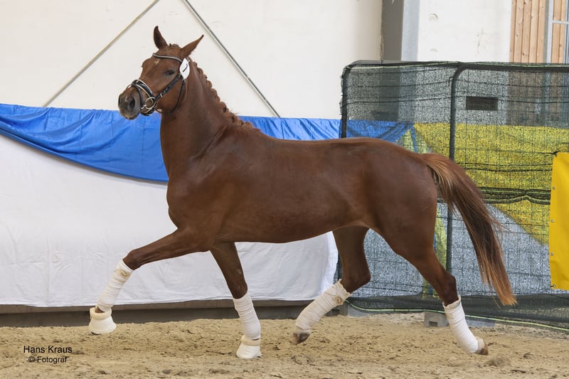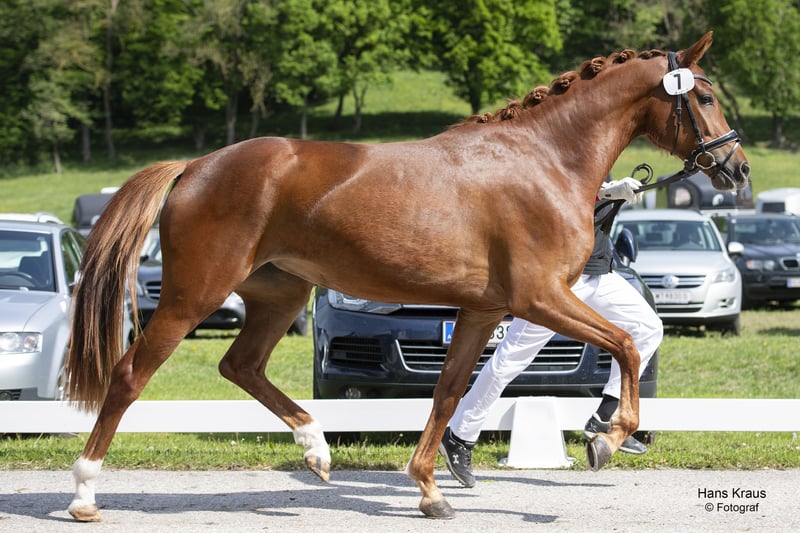 For Sale: Austrian Warmblood – Elegant Dressage Mare Available is a stunning Austrian Warmblood mare, born in 2021. She features an impressive dark chestnut coat and impresses with her attractive appearance and gentle temperament. Standing at 16.1 hh, she is the perfect size for ambitious riders who value quality and versatility. Her dressage training shows promising progress, and she already demonstrates solid fundamentals in her gaits. This talented mare is ideally suited for upper-level dressage and offers great potential for further development. She is regularly vaccinated, well cared for, and comes with a veterinary certificate. Please feel free to contact me for more information. Viewing and test rides can be arranged by appointment.