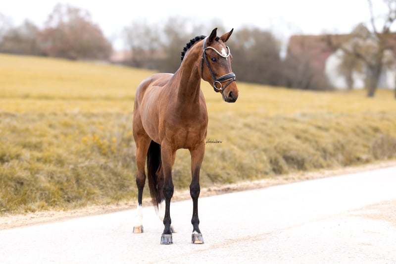 Mit Damons Amour steht eine im Hengsttyp aufgemachte Tochter des Damon Hill aus einer San Amour Mutter zum Verkauf. Direkt aus Züchterhand wird sie seit 3 1/2 jährig professionell ausgebildet und ist altersentsprechend Dressurpferde L fertig. Amour besticht durch ihre hervorragende Rittigkeit, ihre weiche Anlehnung und ihre überdurchschnittlichen GGA. Sie ist ein sehr freundliches, menschenbezogenes und unerschrockenes Pferd, ist brav beim ausreiten, am Turnier, sowie unkompliziert im Umgang. Sie hat mehrere Platzierungen in Dressurpferde A und qualifizierte sich außerdem 2025 für das österreichische Bundeschampionat. Sie kennt bereits Sprünge unter dem Sattel und bietet sich somit auch sehr gut als Allrounder oder Familienpferd an. Sehr gute Röntgenbilder inklusive Hals und Rücken sind vorhanden. Anfragen bitte per WhatsApp/ Telefon unter: 0170/2779570