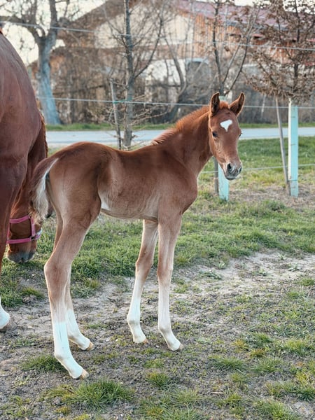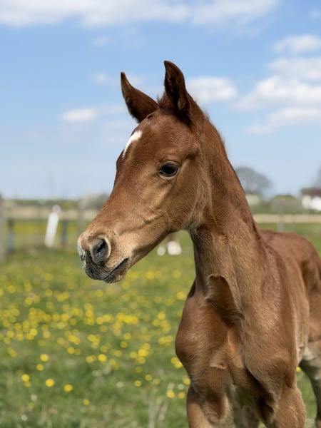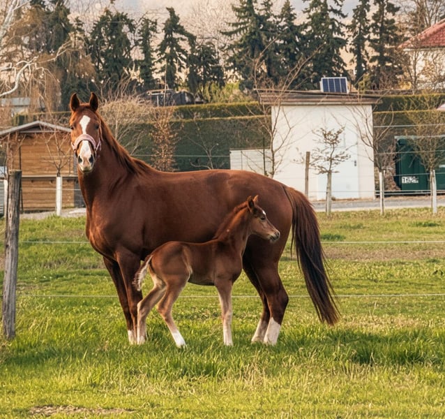 Fina Felicia - geboren 26.3.2026 Feliciano x For Romance I x Locksley II Hochmodernes Stutfohlen mit wunderschönem Köpfchen, überzeugendem Exterieur und überdurchschnittlichen GGA! Fina überzeugt jetzt schon sowohl durch ihr wunderschönes Äußeres, aber vorallen auch durch ihre tollen inneren Werte! Sehr Menschenbezogen & kooperativ lässt sie sich bereits problemlos Halftern, zur Koppel führen & überall anfassen! Erwartetes Stockmaß ~1,70 Weitere Infos gerne per Nachricht! Kann zur Aufzucht im Stall bleiben!