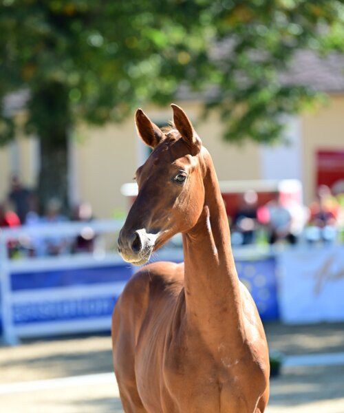 Finalist am AWÖ Bundeschampionat mit 8,5 Punkten! Vargo überzeugte im Fohlenring mit Charme, Korrektheit und hervorragender Bewegungsqualität. Ein vielversprechender Hengstanwärter aus einem der traditionsreichsten und leistungsstärksten Dressurstämme Deutschlands. Vater: Va Bene Der Ausnahmehengst Va Bene gilt als der „König von Pattendorf“. Gezogen und aufgestellt am Zuchthof Wadenspanner, begeistert er durch internationale Erfolge, herausragende Bewegungsqualität und einen Dressur-Zuchtwert von über 150. Unter Johanna Wadenspanner nahm er unter anderem erfolgreich an der Weltmeisterschaft der jungen Dressurpferde teil. Seine Nachkommen stehen für Modernität, Rittigkeit und höchste Qualität im Dressursport. Mutterlinie: Colonne – Hannoveraner Stutenstamm 1188102 (Schridde 158) Der traditionsreiche Colonne-Stamm gilt als Garant für Spitzenpferde in Zucht und Sport. In direkter Linie finden sich zahlreiche gekörte Hengste, hochprämierte Stuten und international erfolgreiche Sportpferde bis Grand Prix Dressur und 1,50 m Springen. Die Mutterlinie brachte u. a.: Frodo (2006, von Frechdachs): siegreich in Grand Prix-Dressur Bonita (2008, von Brentano): erfolgreich bis S-Dressur Fellini PS (2005, von Frechdachs): S-erfolgreich im Fahrsport Lady Macbeth (2002, von Shakespear in Love): siegreich bis 1,20 m Vielseitigkeit Quentin Tarentino (2014, von Quaterhall): Materialpferdeprüfungssieger, 2. Platz Bundeschampionat Wonderfull (2012, St.Pr.): Landessiegerin & Bundessiegerstute Casparo (2011, von Coup de Coeur): gekört, siegreich bis 1,40 m Springen Libretist (2000, von Londonderry): gekört, erfolgreich bis S-Dressur Beverly Boy (2009, von Brentano): erfolgreich bis Grand Prix-Dressur Island (1979, von Inshalla xx): erfolgreich bis 1,50 m Springen Havanna (1977, von Harnisch): erfolgreich bis 1,50 m Springen Dazu kommen zahlreiche gekörte Hengste in direkter Linie, darunter Amstjäger I–IV, Abendrot, Windfang, Ankläger, Düppel, Domherr, Sendal und Firin. Diese außergewöhnliche Erfolgsbilanz unterstreicht die Leistungsdichte und Vererbungskraft des Colonne-Stammes. Mit Vargo vereinen sich die Gene des Ausnahmehengstes Va Bene mit der bewährten Stärke des Colonne-Stammes. Seine Typausprägung, sein Bewegungsvermögen und sein Pedigree machen ihn zu einem exzellenten Kandidaten für den internationalen Dressursport und zu einem wertvollen Hengstanwärter für die Zukunft. Weitere Auskünfte: +43 664 84 53 224